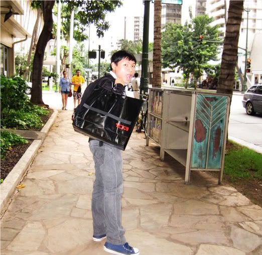 On a lighter note, I finally got a new "pang gimmick" bag. I recieved extra cash last Christmas and I didn't really want to spend it on something other than a bag. While browsing at the Tumi section at DFS earlier, I saw a couple that I really fell in love with, but the prices were just too much. But what the hell, I really wanted a new bag. So I just looked for something that fitted my budget, and I'm happy that I got . . . something:-)